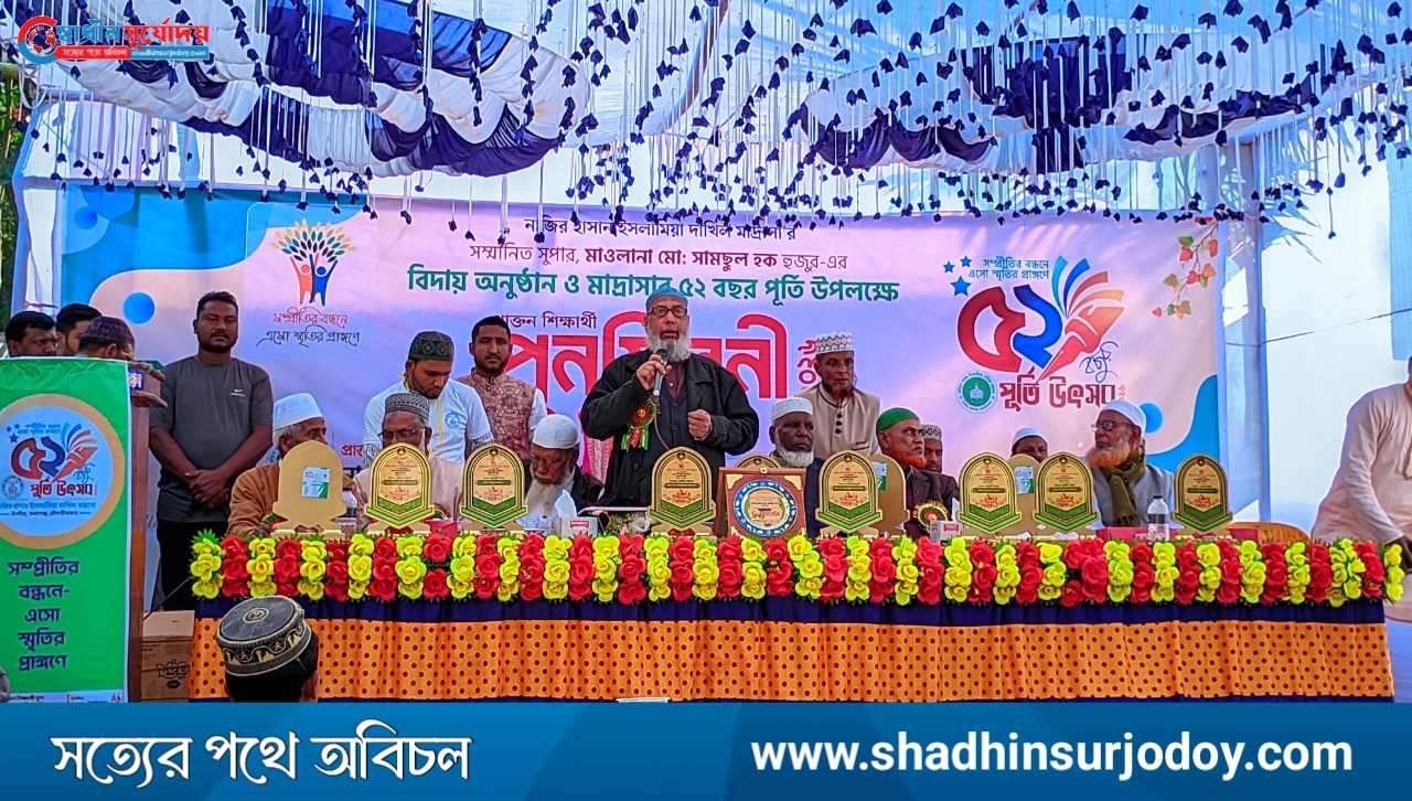 মাওলানা সামছুল হক আবেগাপ্লুত কণ্ঠে বলেন, '৩৬ বছরের কর্মজীবন শেষে আজ আমার প্রাপ্তির খাতাটি ভালোবাসায় পূর্ণ। আপনারা আমাকে যা দিয়েছেন, তা কোনো পার্থিব সম্মানের চেয়েও অনেক বড়। নাজির হাসান মাদ্রাসা আমার ঘর, আমার স্বপ্ন। আজ আনুষ্ঠানিকভাবে বিদায় নিলেও আমার মন পড়ে থাকবে এই প্রাঙ্গণেই। আমি যেখানেই থাকি না কেন, এই প্রতিষ্ঠানের প্রতিটি সাফল্য আমাকে আনন্দিত করবে। আল্লাহ যেন এই মাদ্রাসাকে দ্বীনের এক উজ্জ্বল মিনার হিসেবে কবুল করেন।'