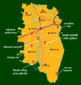 ছবি: "ম্যাপ" কমলগঞ্জ উপজেলার পর্যটন কেন্দ্র ।[/caption]